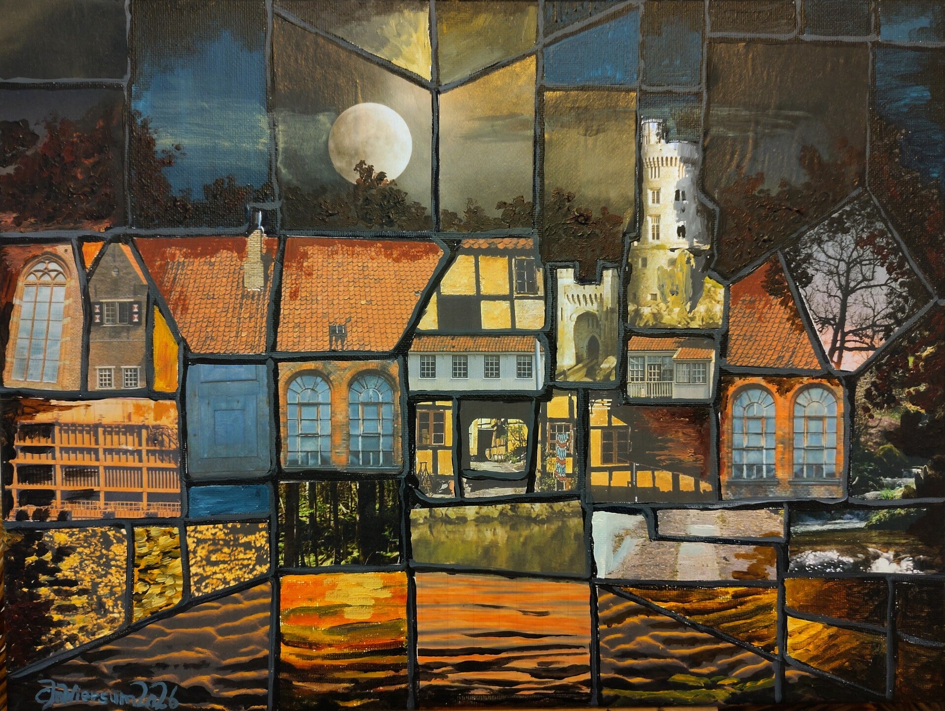 Het werk bevat een aantal fotofragmenten die aan elkaar gepast werden. Het bevat foto's van o.a. Cork, Langeland en Port Hedland. De fragmenten worden van elkaar gescheiden door zwart/loodgrijze lijnen zodat het geheel iets weg heeft van een gebrandschilderd raam. Het blijkt ook heel mooi (doorschijnend) te zijn wanneer er licht achter schijnt. Misschien een idee om een lampenkap op deze manier te beplakken...