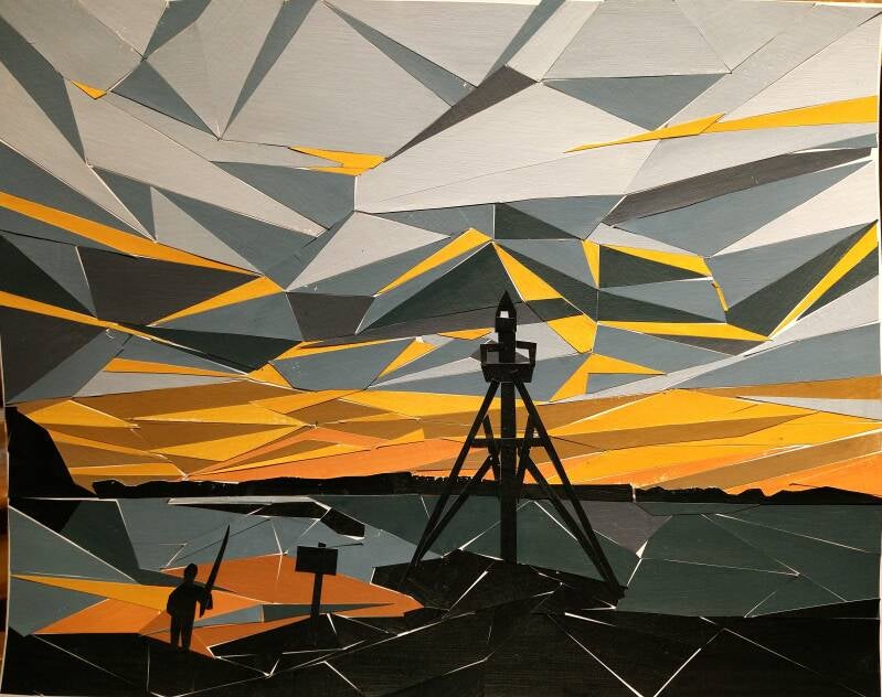 Een variant op het gelijknamige kubistische werk. De lichtopstand te Hoorn met een ondergaande zon. Beide schilderijen stralen een bepaalde kracht uit, zo werd mij verteld.