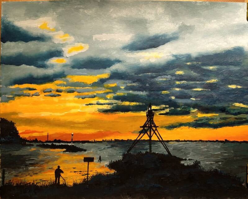 Hieronder: schilderij geïnspireerd op deze (Noordzee, 2002).
